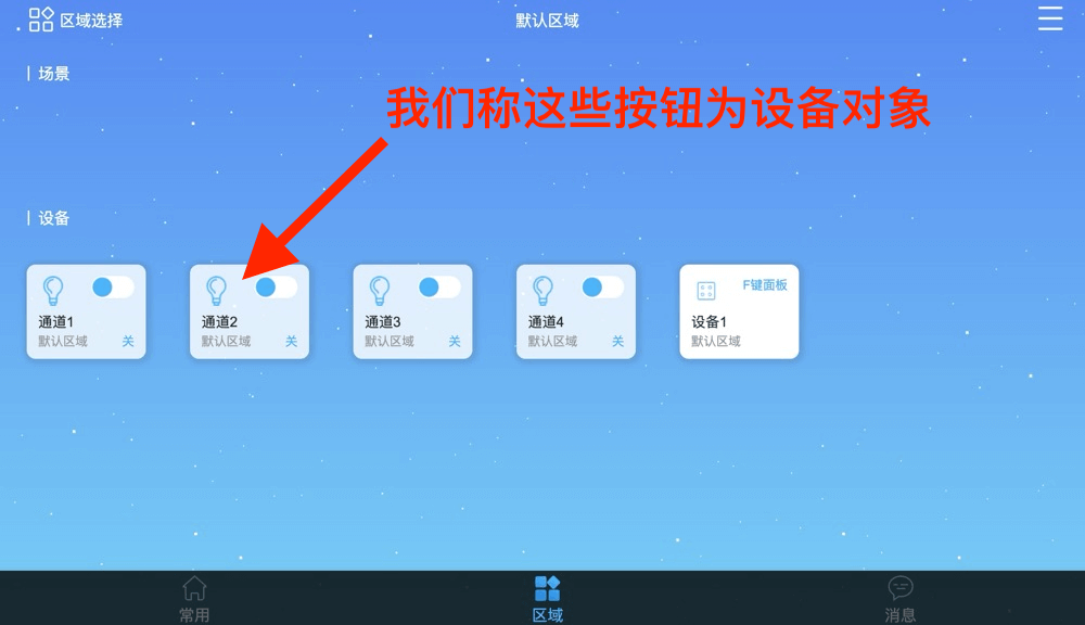 设备对象:可理解为通道,如 4 路通断模块将生成 4 个可控制对象。