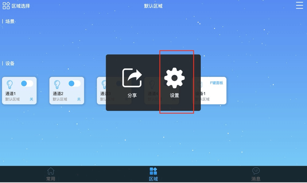 - 在区域页面,长按面板对象,进入面板设置页面: