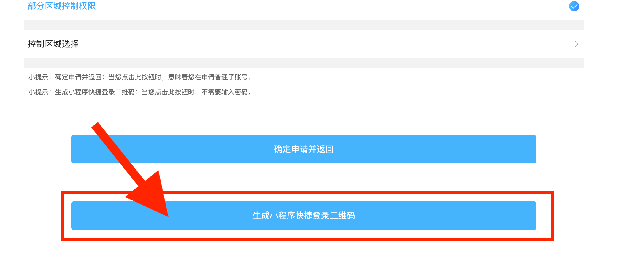 在 添加子账号页面,完成信息填写后,点击 生成小程序快捷登录二维码 即可。